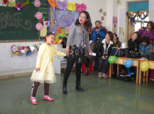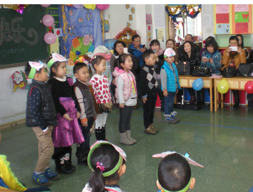 2014年12月31日,我园大班的教室里传出阵阵欢声笑语,孩子们正在用自己最开心的方式和爸爸、妈妈、老师及小伙伴们共同迎接羊年的到来。孩子们用自己亲手制作的手工饰品把教室装扮的五彩缤纷,有红红的纸灯笼、可爱的圣诞老人、绚丽的拉花、形状各异的窗花。上午9点,新年联欢活动正式开始,各班联欢会主持人完全由孩子来担任。所有的孩子都戴上自己制作的小羊头饰,集体展示了半年来在幼儿园里学到的歌舞,生动的表演真的像一群活泼可爱小羊羔。最令人叫绝的还要数亲子合作表演的节目,什么双簧呀,一家亲三句半呀,父子表演唱呀等节目将联欢会推向了高潮。联欢会中不但节目异彩纷呈,而且还有热闹非凡的游戏活动,其中抢凳子游戏使孩子和家长们玩得不亦乐乎。联欢会间程园长到每个班级为家长朋友、老师和小朋友们祝贺新年,还代表幼儿园为每个孩子送来了新年礼物。