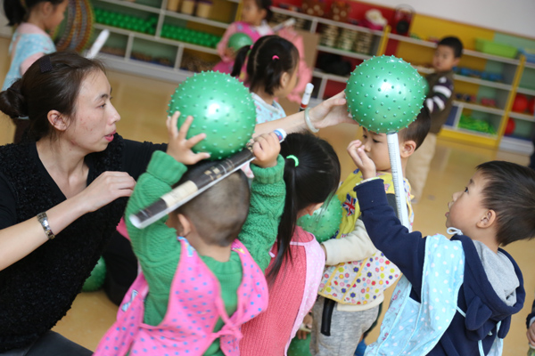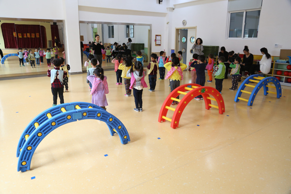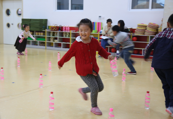 11月5日进行了小班游戏观摩活动,四个小班分别进行了“有趣的沙包”、“兔宝宝闯关”、“百变球宝宝”、“神奇的报纸”游戏活动。在6日上下午中大班进行了“圈圈乐”、“好玩的纸棒”、“玩球”、“有趣的瓶子”四项游戏活动。活动中,教师们根据幼儿好模仿、好想象、好玩耍的特点,将幼儿熟悉的各种动物、故事的形象、情境与使用各种运动器材、生活用品相结合,使幼儿的游戏变得活泼生动、变化多端,激发了幼儿参与运动的兴趣。此外,孩子们也都能在老师的启发下自由创意出各种新奇有趣的玩法,不仅锻炼了身体,还提高了创造性的思维。本次活动取得了十分有益的活动效果,为我园进一步研究幼儿游戏活动的课程开发提供了有效的资源,对推动我园户外游戏活动的开展起到了良好的促进作用。