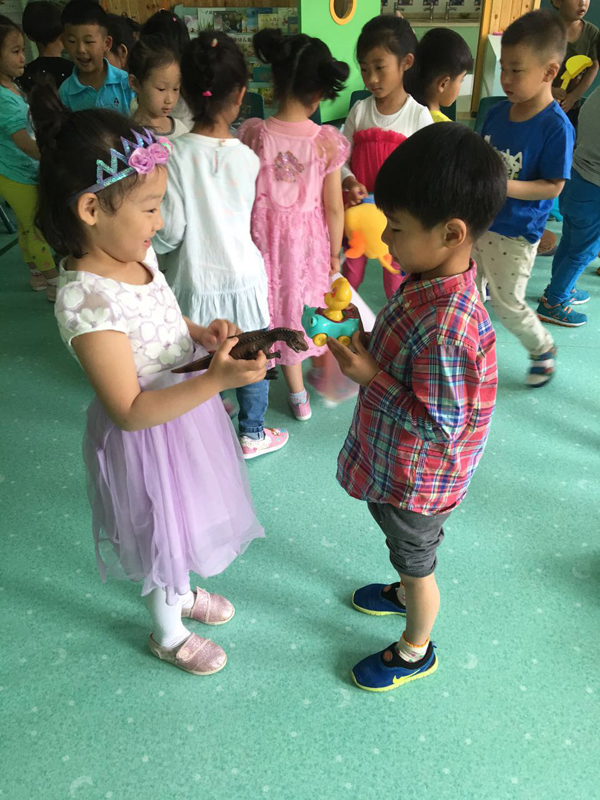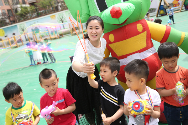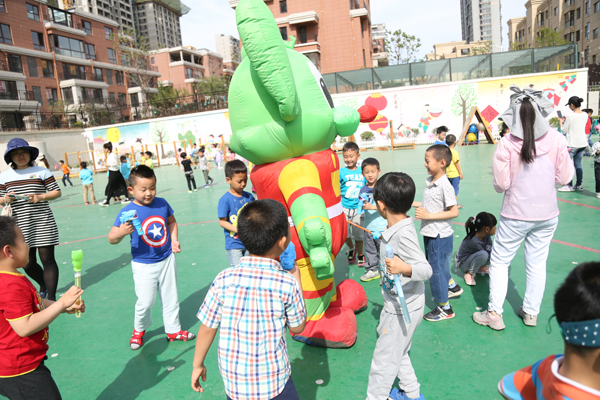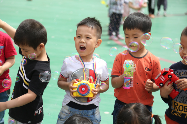 5月27日早上8:00,孩子们在老师和家人的陪伴下,来到北陵公园,走进大自然,进行了妙趣横生的亲子游园活动。找宝、钻圈、猜谜、野餐……亲子活动让孩子们成为快乐的精灵,释放着心中的欢乐。场面其乐融融,充满了温馨祥和的气氛。为了增添节日的氛围,5月31日清晨,老师们装扮成幼儿喜爱的充气玩偶,迎接每个来园的小朋友。早餐过后,在各班老师的带动下小朋友们开展了“互换玩具,闲置变宝”活动,每个人将自己闲置的“小宝贝”通过置换重新得到最“称心如意”的礼物,不仅增进了孩子们之间的友谊,同时还让幼儿懂得了减少资源浪费的环保意识。接下来,老师和孩子们来到操场一同进行了一场别开生面的“吹泡泡”游戏,伴随着美妙的音乐,孩子们手持各类泡泡工具,通过运用各种感官,发现泡泡的奥秘,孩子们兴趣盎然,欢笑声响彻整个操场。为了让孩子们更好地感受节日的快乐,午睡过后孩子们走进娃娃影视厅,观赏了电影《疯狂动物城》,被影片诙谐幽默的情节所吸引,本次“玩转六一”系列活动在欢声笑语中落下帷幕,孩子们意犹未尽。
