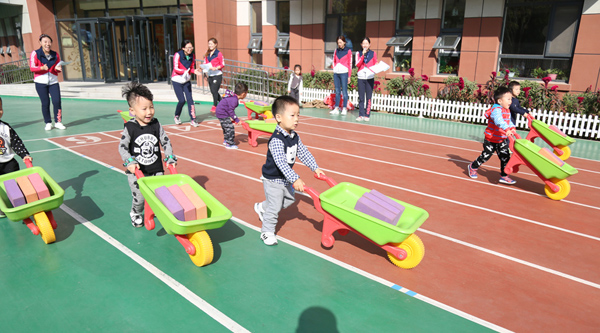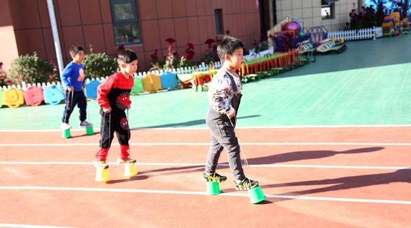 开幕式后,趣味运动比赛正式开始,老师们精心策划的“高跷运球”、“平衡健将”、“袋鼠跳”、“推小车”、“花样轮胎”等活动把运动会推向高潮。孩子们可爱的表情、稚嫩的动作引得赛场笑声不断。每一个比赛项目都巧妙地融入了跑、跳、钻、爬、平衡等幼儿应该掌握的基本动作,通过游戏、竞赛等形式向家长们展示了孩子们的进步。