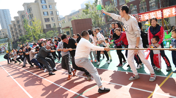 随后,各班家长代表来到场地中间,在老师们的组织下进行了紧张激烈的拔河比赛。呐喊声、加油声再次将场上气氛推向了高潮!