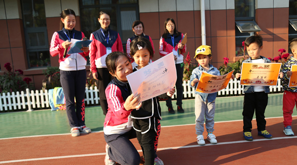 为了充分调动孩子们参与体育活动的积极性,增进孩子与家长之间的亲子关系,更好地做好家园共育工作,省实验学校附属幼儿园于2016年9月28至30日举行了第二届亲子趣味运动会,大、中、小班组分别进行比赛。本次运动会以“我运动、我健康、我快乐”为主题,全体教师、幼儿、家长共同参与了活动。