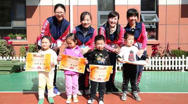伴随着美妙的音乐,主持人宣布整场比赛结束,大四班、中二班、小四班分别获年组第一名。