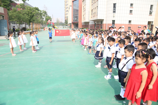 6月26日星期一,金色的阳光洒满大地,省实验附属幼儿园里盛开的鲜花显得格外娇艳、一颗颗树木也变得更加翠绿。孩子们怀着激动的心情列队来到操场,等待着升旗仪式的开始。