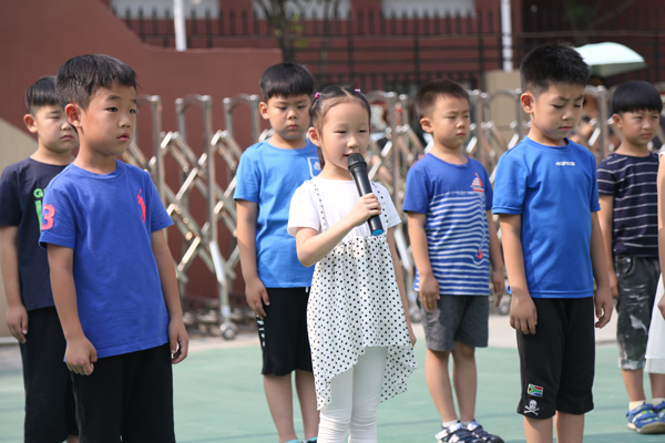 在国旗下的诗朗诵环节,小旗手们有声有色地朗诵了诗歌《节约用水》,赢得了全体教师和幼儿的热烈掌声。省实验附属幼儿园每一周都会安排不同的班级主持升旗仪式,升旗仪式为孩子们提供了展示自我的平台,提高了幼儿自我表现能力。