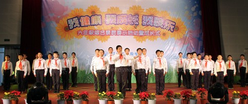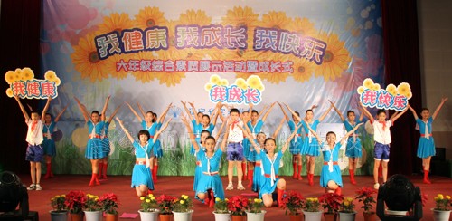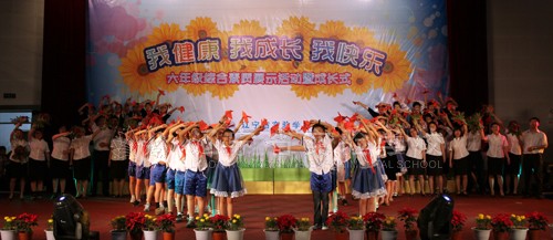 我校的展示活动主会场在文体馆,活动分为欢迎仪式、课堂教学观摩、六年级综合素质展示暨成长式、行进管乐队表演四个板块。在欢迎仪式上,孟宪彬校长首先致欢迎辞,他简要介绍了学校概况,向与会专家、领导、来宾表达了欢迎之情和感谢之意。张丽文副校长以《让每一名学生都拥有成就美好未来的素质》为题,进行了我校学习力整合实践研究的情况汇报。我校一直把阅读能力的提升作为学生学习力培养的突破口,所以课堂教学观摩板块并开了7节语文识字、阅读课,与会代表纷纷走进课堂,与我校师生们共同感受了阅读课的魅力。每年7月我校都为结束六年学业的孩子们举行成长式,为学生搭建展示学习成果和综合素质的平台,使学生在综合运用各学科所学知识的过程中发展学习力,也使学生在积极的情感体验中陶冶情操,为未来的初中生活奠定良好的思想和情感基础。成长式是本次展示活动的重要内容,六年级220名学生,全员参与,把在校六年的学习所得以不同的方式进行展示,六年级学生家长应邀参加了活动,与孩子们一起分享了收获的喜悦和成长的幸福。最后进行的学校行进管乐队的表演博得了阵阵掌声和赞叹。