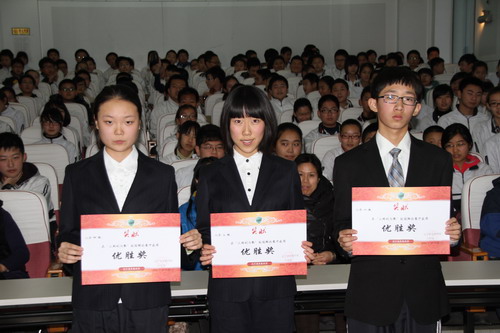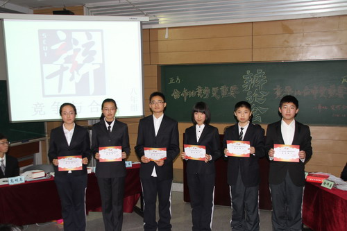 2012年12月6日,思品学科和八年组共同承办的辩论表演赛在多功能厅顺利举行。