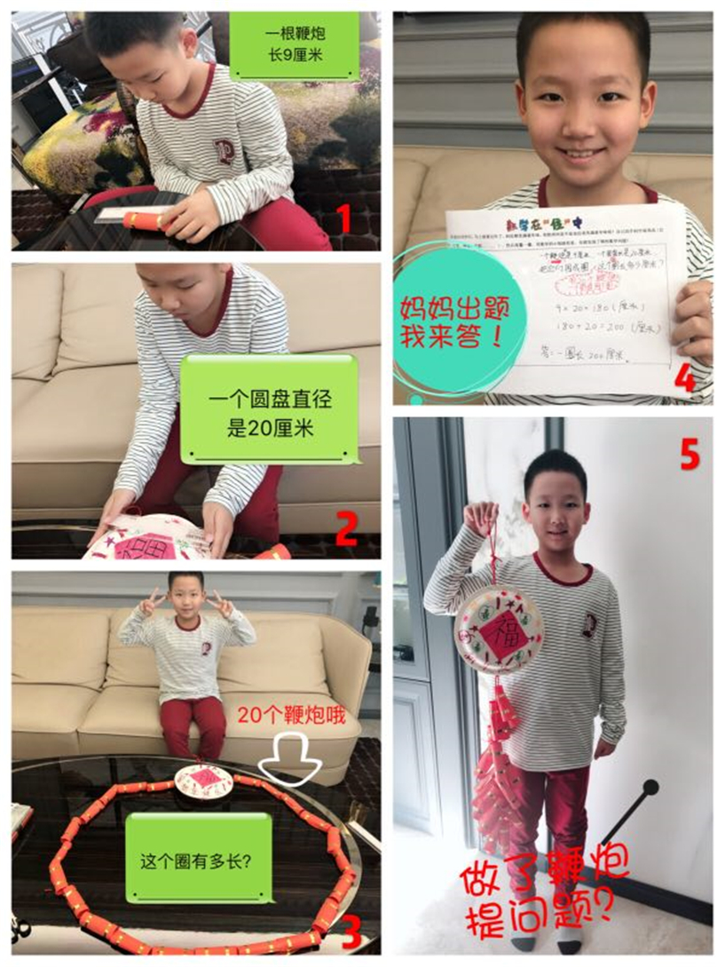 同时当家7天乐、“24”点游戏、装扮卧室、制作日历、小小理财师等贴近学生兴趣的实践活动在各个年龄段的学生中开展。制定一周的三餐规划,亲自购买食材、与爸爸妈妈一起下厨,估算出一日三餐的开销;跟爸爸妈妈好朋友玩“24”点,看看谁能最先得出24;动手制作灯笼、爆竹、拉花等装饰品,装扮自己的卧室,让自己的卧室年味十足,看看其中有有哪些数学的奥妙;把自己得到的压岁钱进行理财规划,形成理财方案......在贴近学生兴趣的实践活动中真正的让学生学会用数学的思维思考并解决问题。
