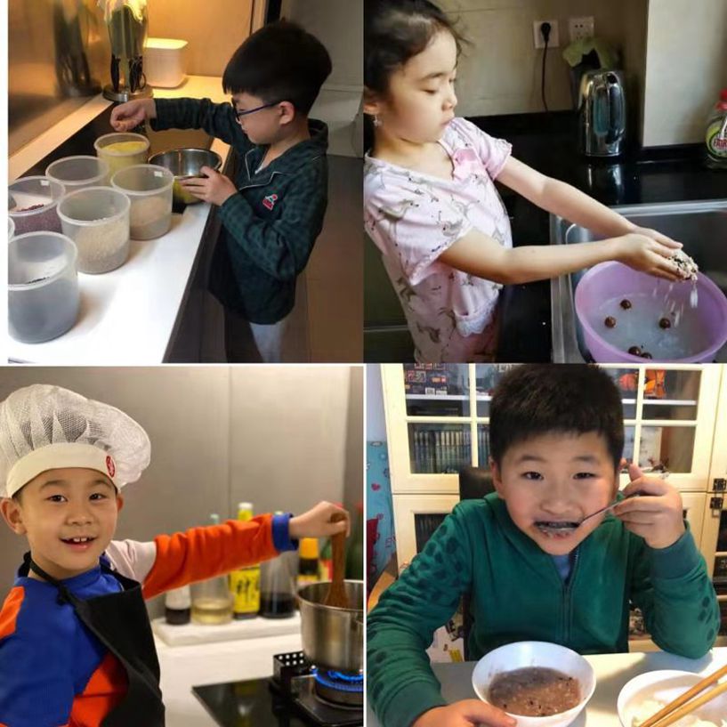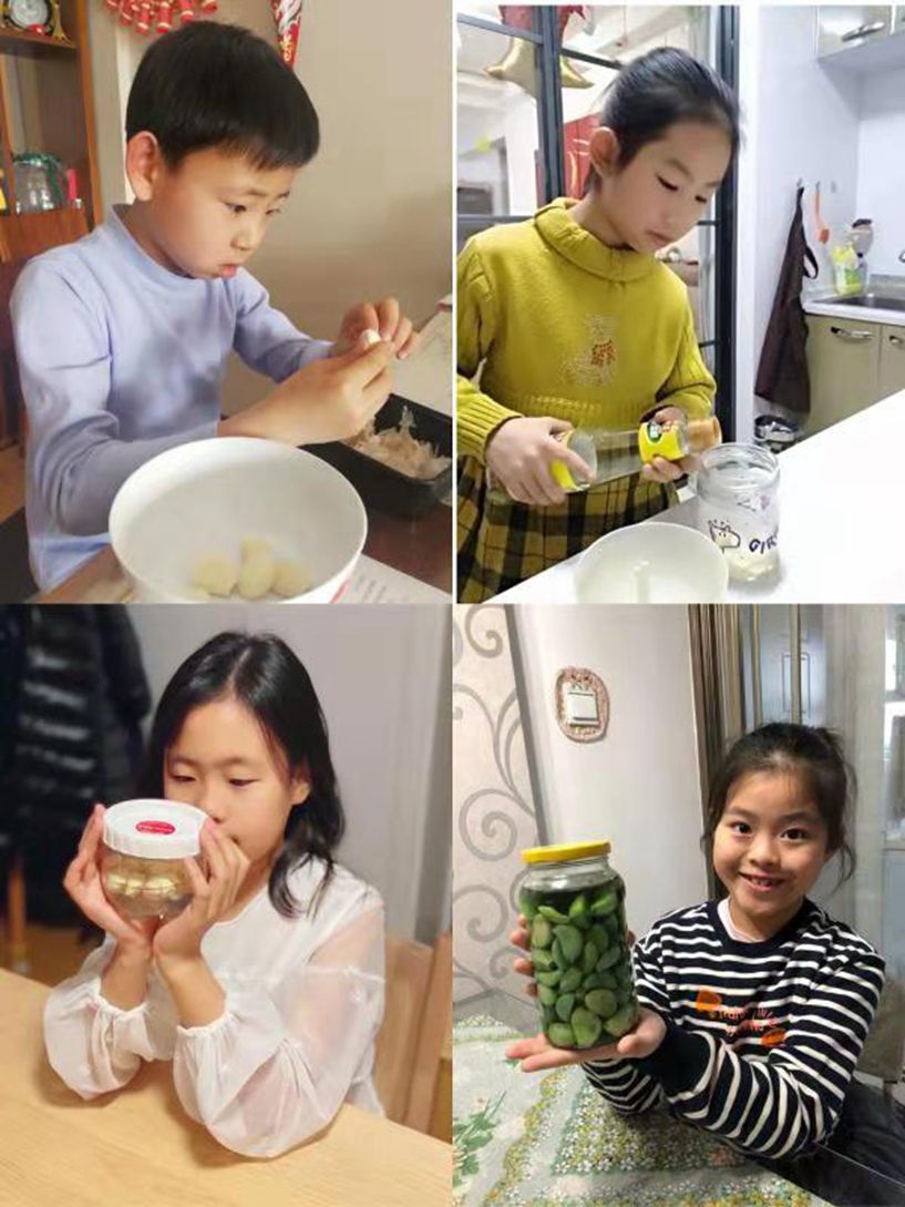 过年意味着团圆,意味着幸福,更意味着对传统文化的传承。刚到腊八,一年级的孩子们秒变“小厨师”,精心做起了腊八粥。从挑选食材、清洗浸泡到腊八粥的品尝,提前感受着“舌尖上的年俗”;二年级的孩子们将语文、数学、美术、综合等多学科所学知识融合到一起,剪窗花、折猪头、做鞭炮、挂灯笼,巧手装扮幸福家;三年级的孩子们也在腊八这一天开始制作腊八蒜。选蒜、剥皮、泡醋、密封,每一步骤毫不马虎,他们在观察、记录和期盼中迎接鼠年的到来!
