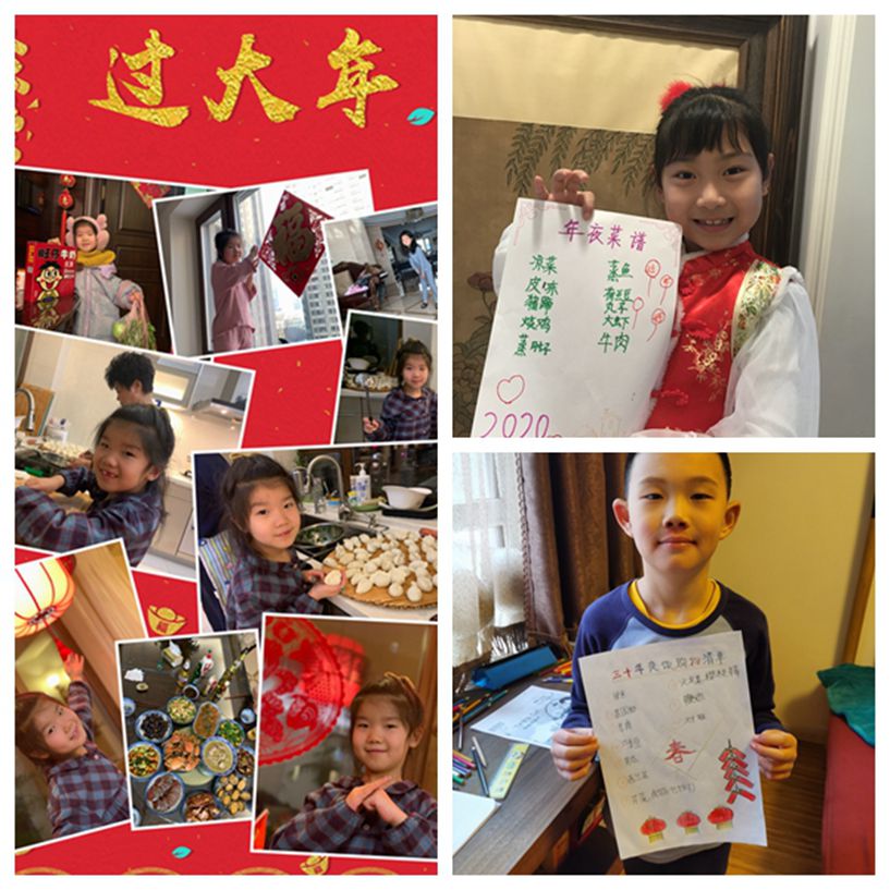 一、二年组的孩子们在与家长共同体验中国传统“年味儿”的过程中,不仅学到了做菜的本领感受生活的乐趣,还体会到了劳动的快乐,增进了亲子感情,同时还学会了面对突发疫情怎样自我保护的好方法。相信孩子们在探寻传统民俗的魅力的同时,一定会使传统民俗文化薪火相传,助力疫情防控,为和和美美的中国年奉上最优美的答卷。