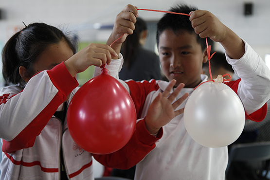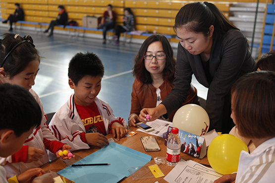 本届活动的主题是“创玩科学欢乐行”,下午1点30分,我校四年四班的全体同学与家长首先体验了“漂浮的曲别针”、“牙签星星”、“超越巅峰”等近20个科学热身小游戏,在活动正式开始前就引发了大家的参与热情。随后,到场的领导分别表演了“科学开场秀”,带领同学们“玩”起了“气球赛跑”和“摆荡气球”,将活动推向了一个小高潮。在正式活动中,孩子们与家长、志愿者们共同完成了“请给出证据”、“完美容器”两个探究性科学挑战任务,大家认真思考、动手尝试、小心求证、勇于展示的场面,使整个活动趣味横生,也使家长对科学教育活动有了一个全新认识。