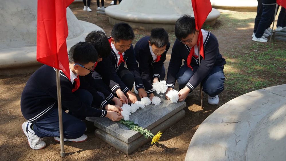 4月10日上午,六年组师生列队步入苍松掩映的沈阳抗美援朝烈士陵园。拾级而上,123座志愿军烈士墓静默无言。全体师生献花,默哀,瞻仰浮雕墙,在纪念碑前重温誓词。铿锵誓言划破长空,学生们眼眸中满是坚定,立志传承英烈精神。